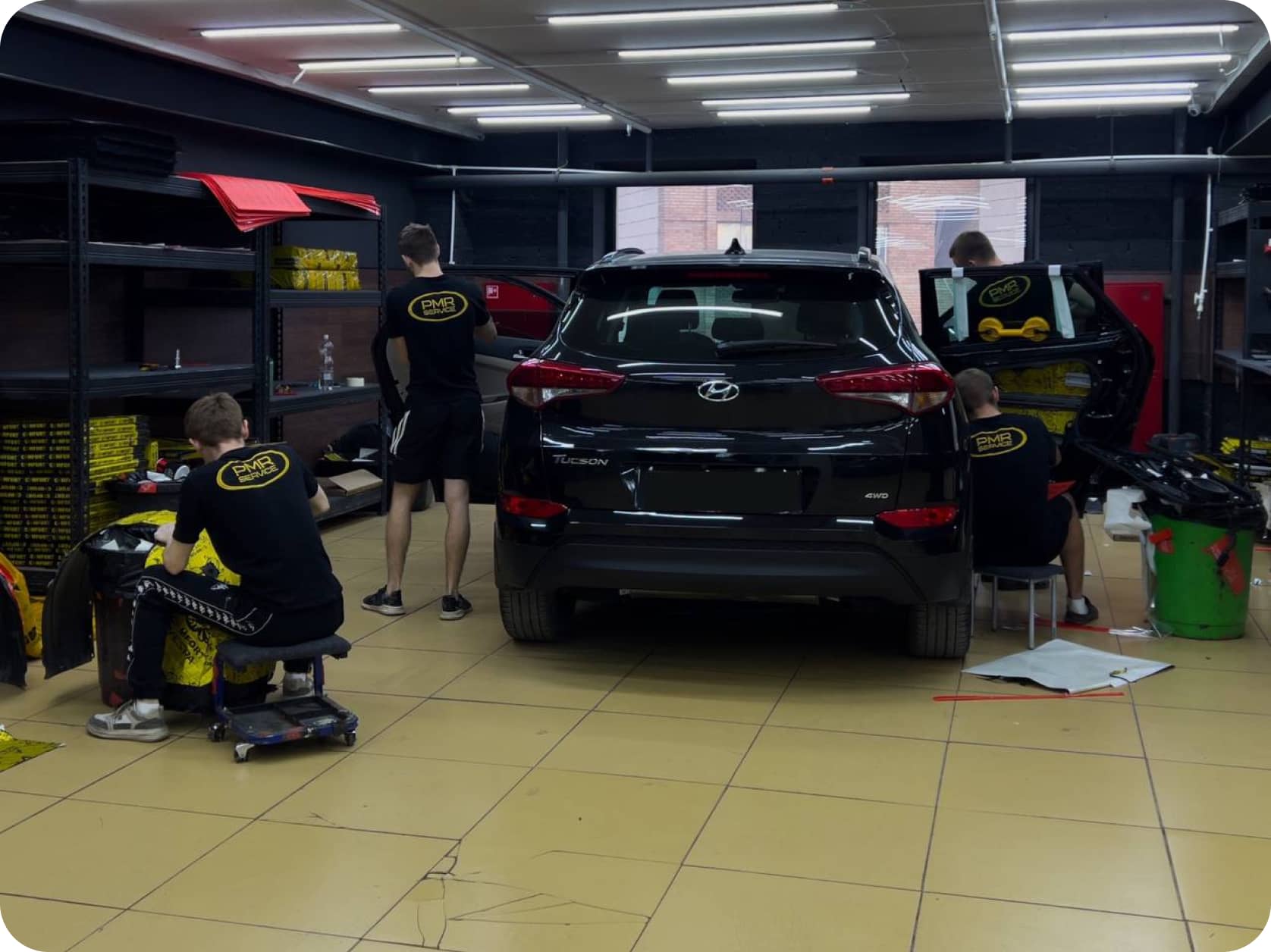 Мы с командой: Я (руководитель), Старший мастер и мастер 1й (высшей) категории выезжаем к Вам в город, в Ваш установочный центр и обучаем команду для запуска услуги шумоизоляции авто. Сами возьмем на себя заботы по прилету и проживанию.